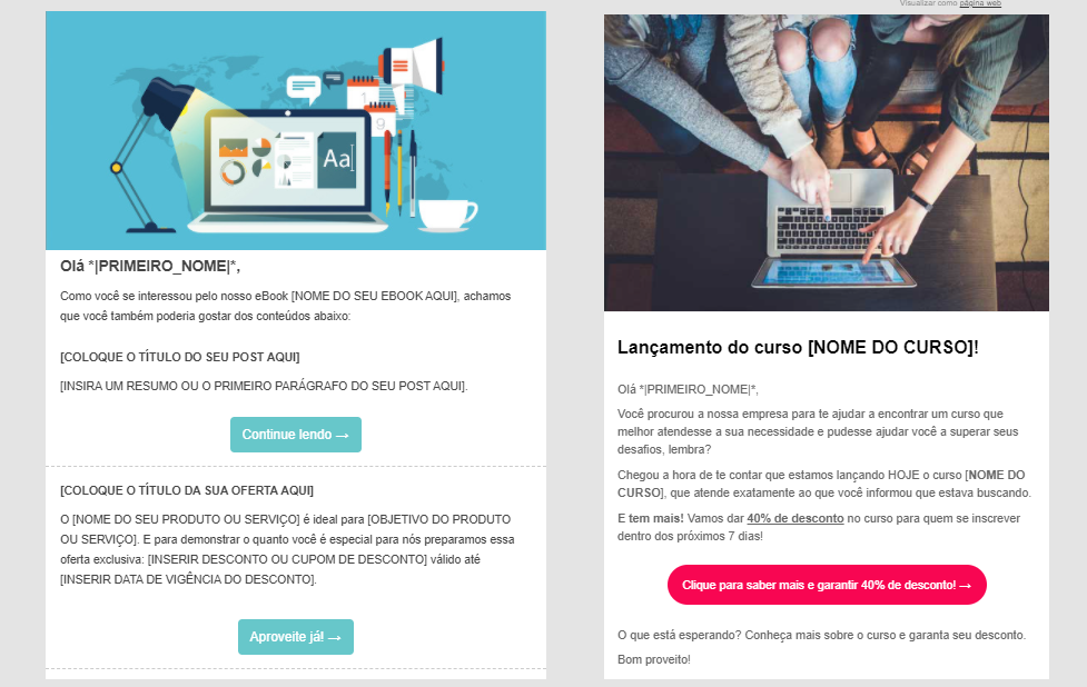 Uma ótima forma de utilizar essa ferramenta é no remarketing dos seus serviços ou produtos para pessoas que já demonstraram interesse mas não finalizaram a compra. Para conquistar esses leads, você pode oferecer descontos e apresentar as facilidades que a sua empresa oferece através dos e-mails.